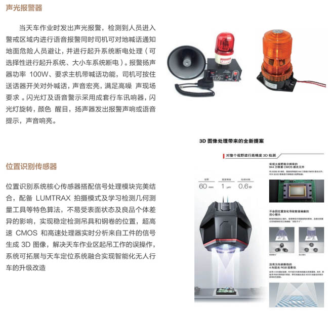 5、位置識別系統(tǒng):采用定位及位置識別最新技術(shù),通過圖像識別傳感器,識別鋼卷和吊具的位置,進(jìn)行計算和分析判斷吊具與鋼卷具備吊掛和起吊條件,進(jìn)行語音提示,系統(tǒng)具有自動識別跟蹤鋼卷與吊具的距離,操作工實(shí)時掌握清晰的位置及畫面信息,準(zhǔn)確無誤的操作,與天車定位系統(tǒng)拓展能達(dá)到自動起吊,最終實(shí)現(xiàn)智能化、無人化行車的升級改造。該系統(tǒng)能極大的減少操作人員的誤操作,給生產(chǎn)及安全提供有力保障,提高生產(chǎn)效率及設(shè)備安全性。